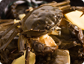 黃油蟹在生長的過程中,要從咸水區(qū)域到淡水區(qū)域,經過多次蛻殼,水溫必須控制在15-28℃。日常監(jiān)測水溫、鹽度、PH值,保持良好的水質和地質。投喂方面,蟹參堂的黃油蟹只喂野生白蜆,這也是黃油蟹油香肉香兼金黃的關鍵。